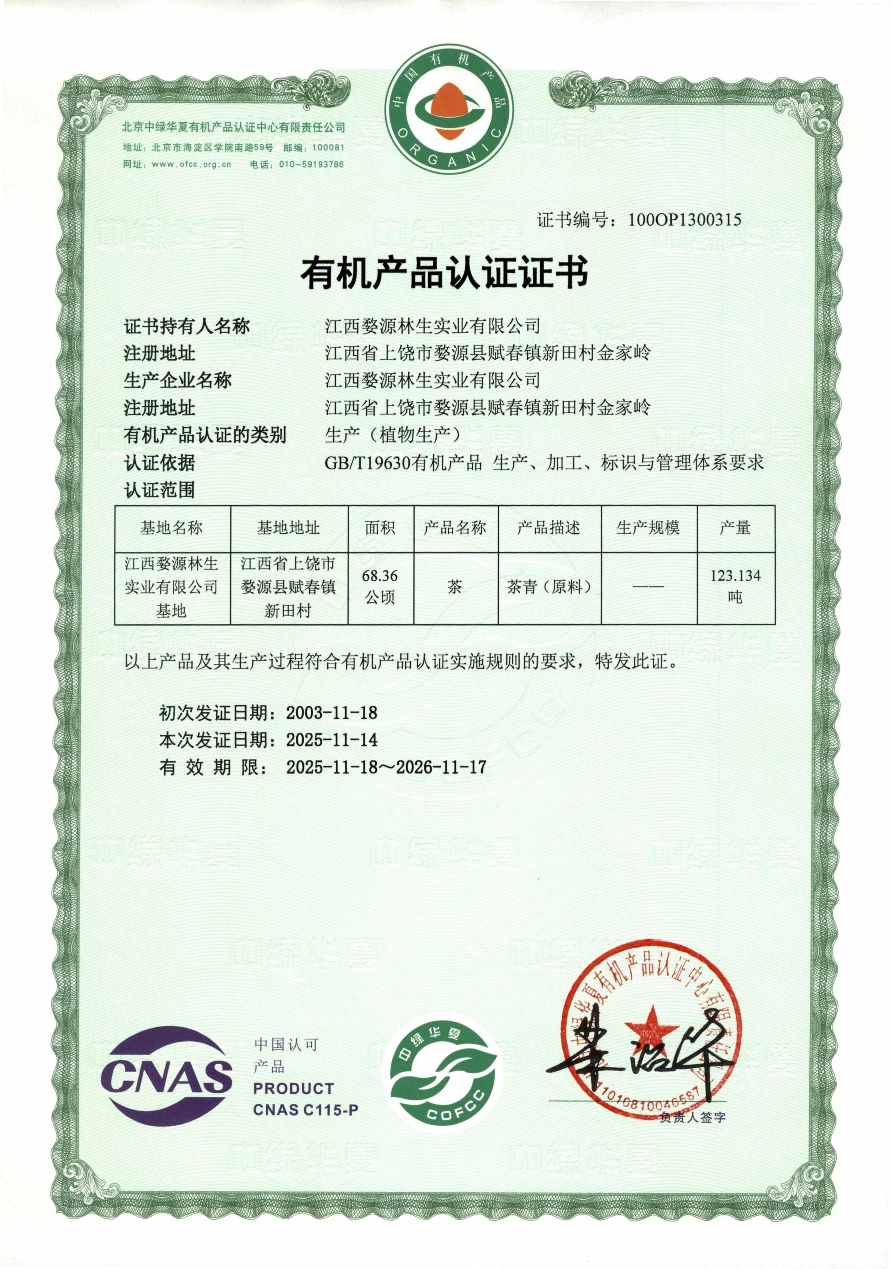 江西婺源林生实业有限公司坐落在亚洲最大的“鸳鸯湖”畔,依托婺源优良的生态环境,传承历史,以“保护生态,利用生态,建设生态”为己任,致力于有机茶的生产与开发。历经三十年的努力,江西婺源林生实业有限公司全力打造“茶在林中生、林中生好茶”的“林生”茶品牌,运用“公司+基地+农户”的经营模式,做大做强企业,带动更多的农民共同致富。