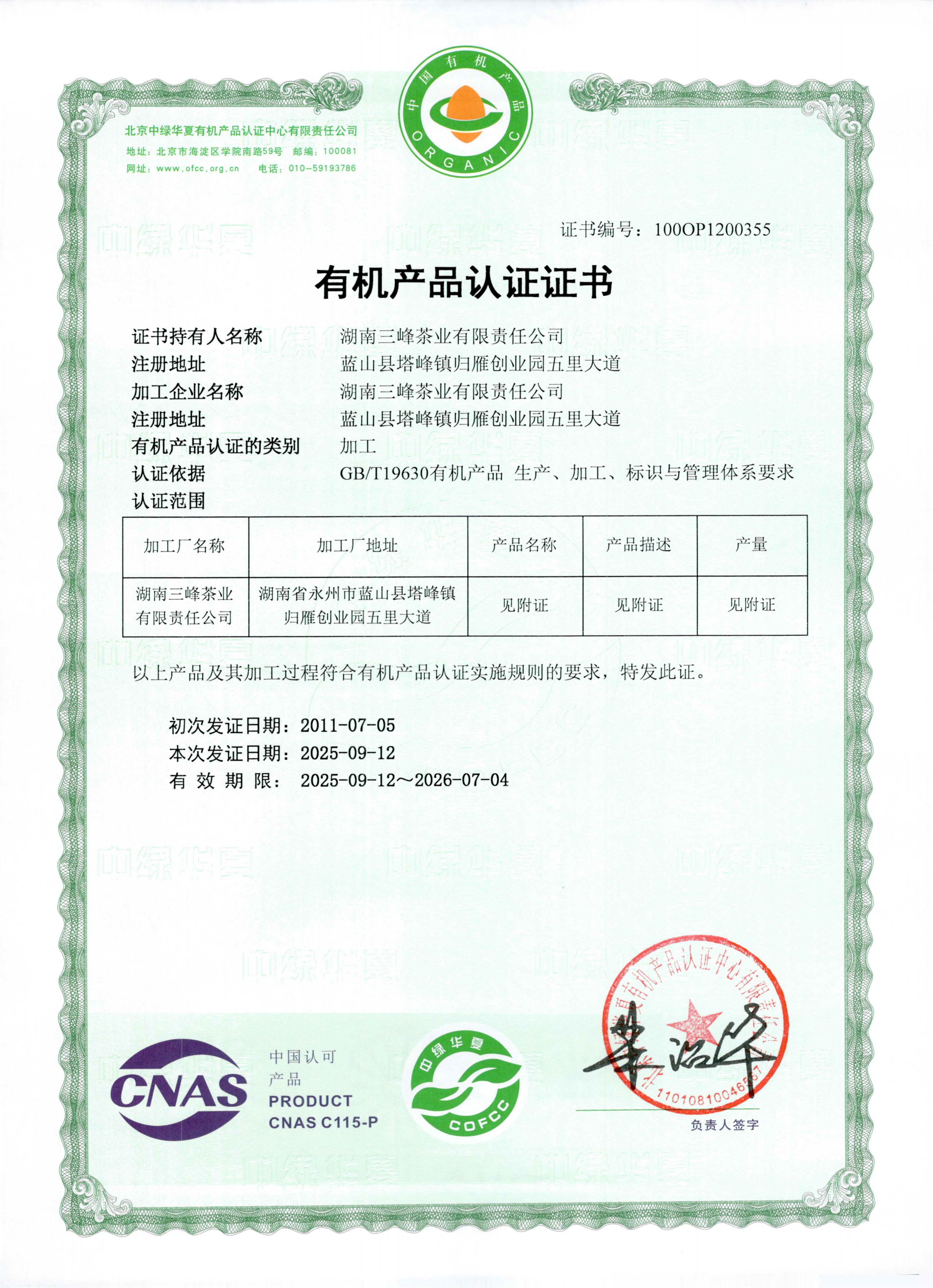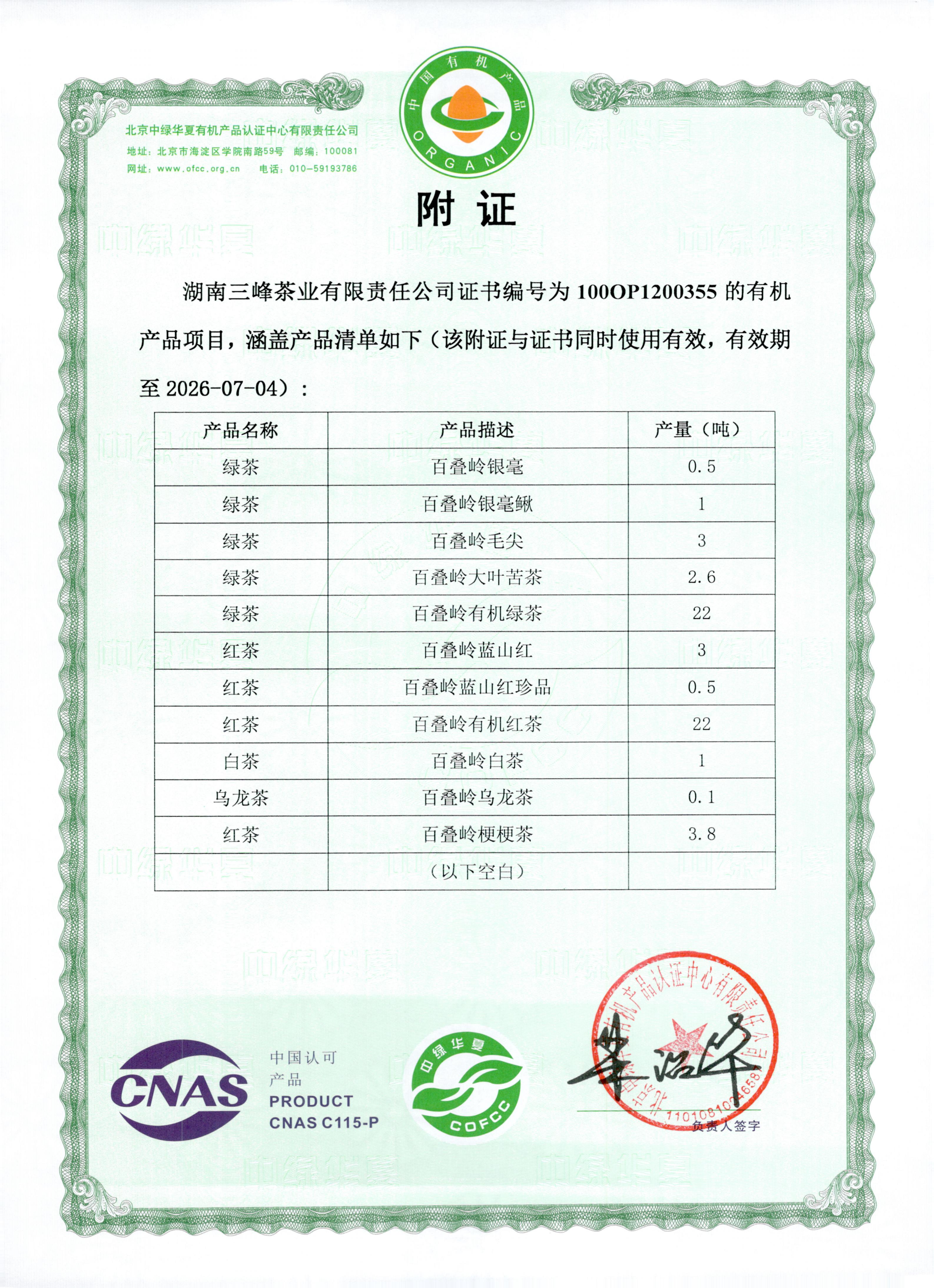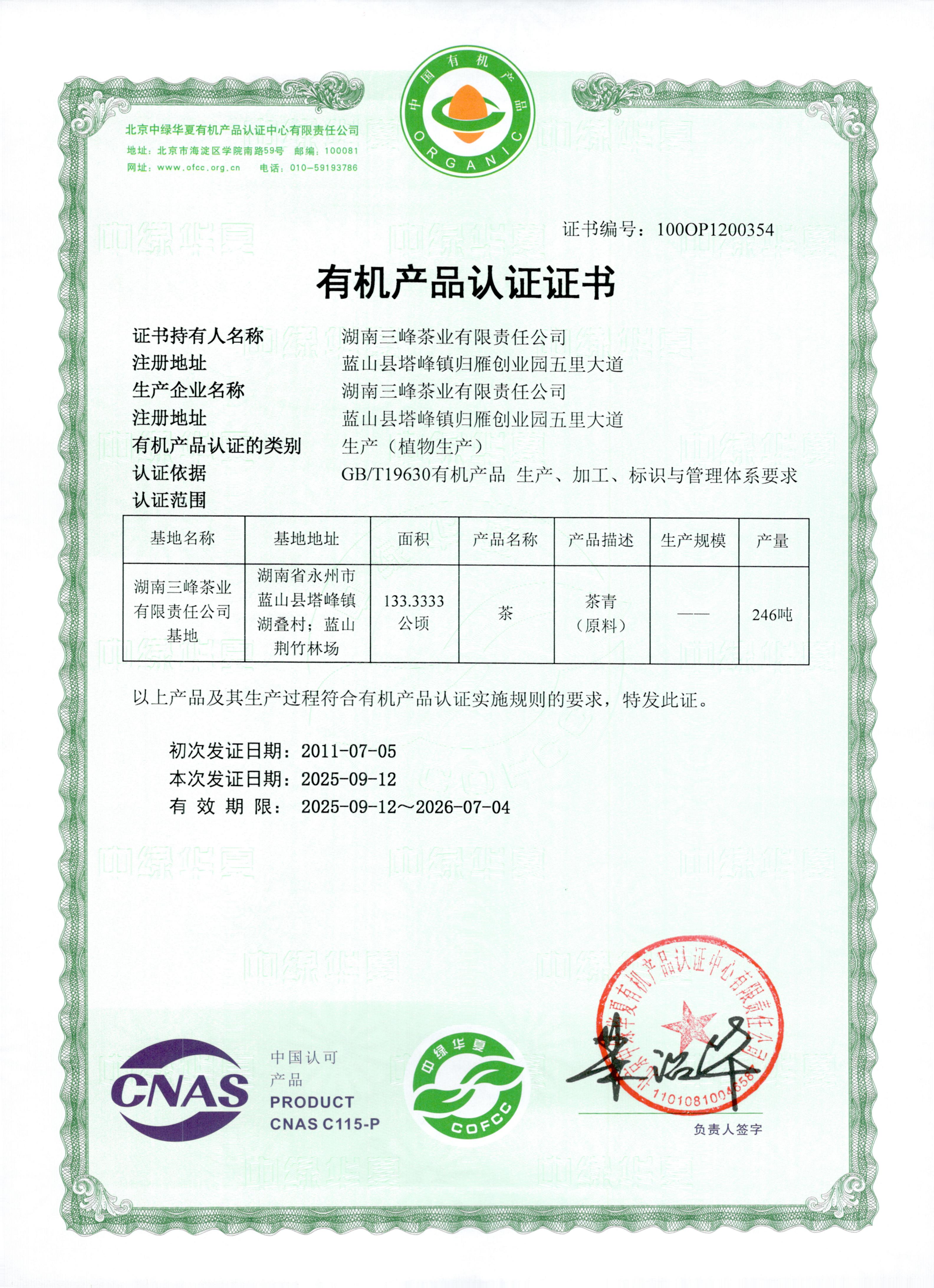 湖南三峰茶业有限责任公司位于“全国重点产茶县”“全国十大生态产茶县”——湖南省蓝山县,由湖南省茶叶研究所提供技术支撑。经过多年努力,公司逐步形成了集有机茶种植、加工、销售和营林生产于一体的产业化格局,是“湖南省农业产业化省级龙头企业”。公司产品已通过QS认证和有机食品认证,并通过了ISO9001:2008质量体系管理认证和ISO22000:2005食品安全管理体系认证,“百叠岭”商标为“湖南省著名商标”,产品被认定为“湖南省名牌产品”。