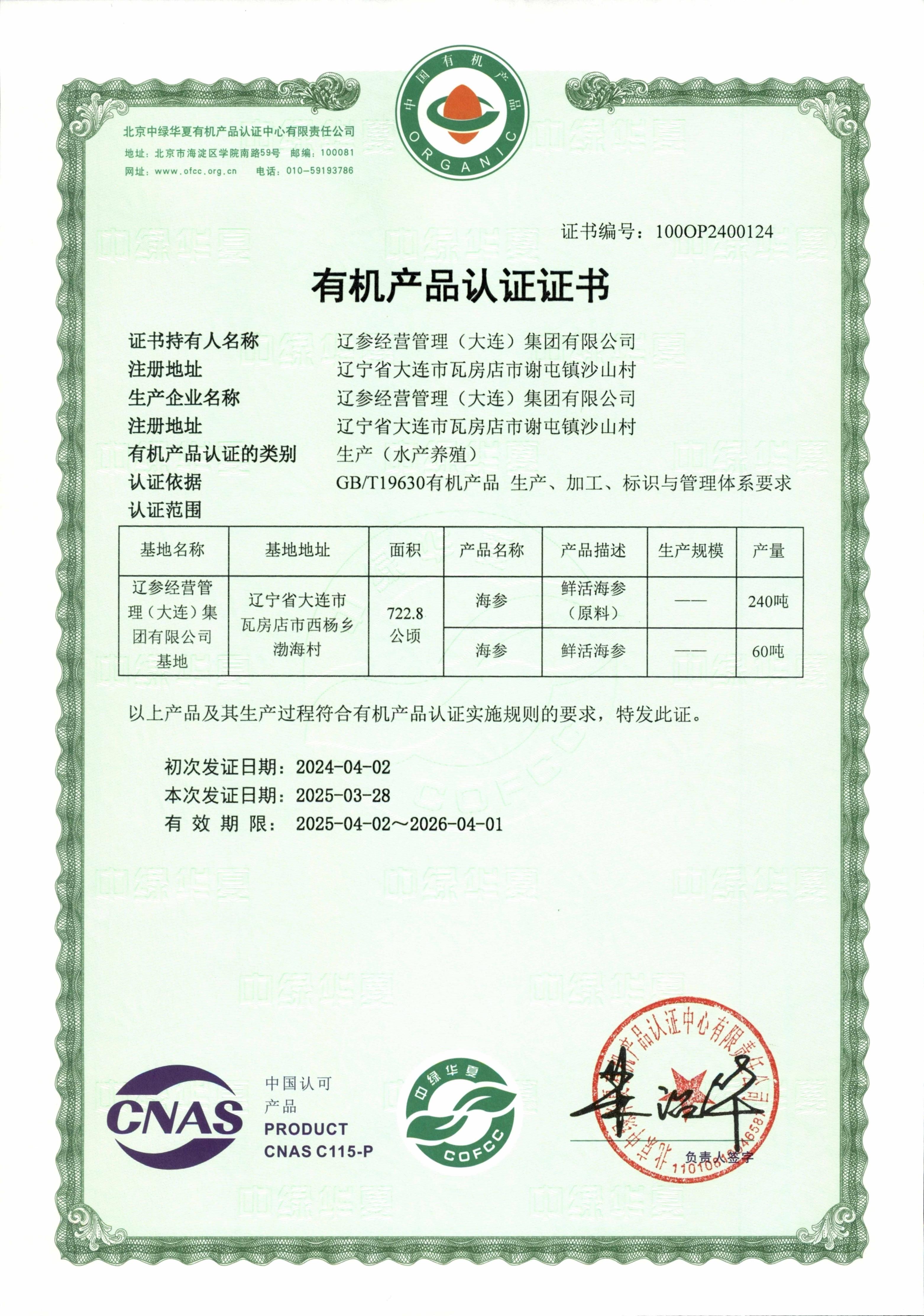 辽参经营管理(大连)集团有限公司,成立于2020年,总部位于“中国辽参故乡”大连瓦房店市,是国家现代农业产业园(海参产业园)核心企业、全国有机农产品(海参)基地对接企业。辽参集团拥有7条国家一级标准海参生产线,日加工鲜活海参35万千克、即食海参1.75 万千克。企业积极应用新科技、新成果,在产地溯源、产业金融、生产加工、质量管理等方面系统构建数字化运营模式,为产业持续发展提供战略支撑。公司奉行“辽参原产地,自然好海参”产业操守,积极塑造地域品牌公信力,有效强化品牌核心竞争力。