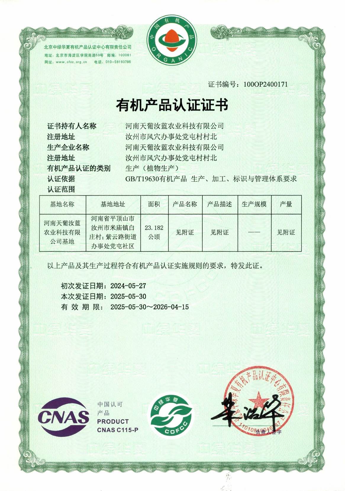 河南天葡汝蓝农业科技有限公司成立于2016 年11月,坐拥河南省汝州市600亩核心产业基地。作为国家级生态农场、国家产业强镇项目主体单位,公司同时获评省级有机果蔬全产业链标准化示范项目单位,目前是中绿华夏有机认证机构河南省唯一认证的有机蔬菜基地。公司以“有机平权”为愿景,通过技术革新降低有机生产门槛,构建从田间到餐桌的信任链,致力成为中国县域有机循环农业解决方案首席供应商。