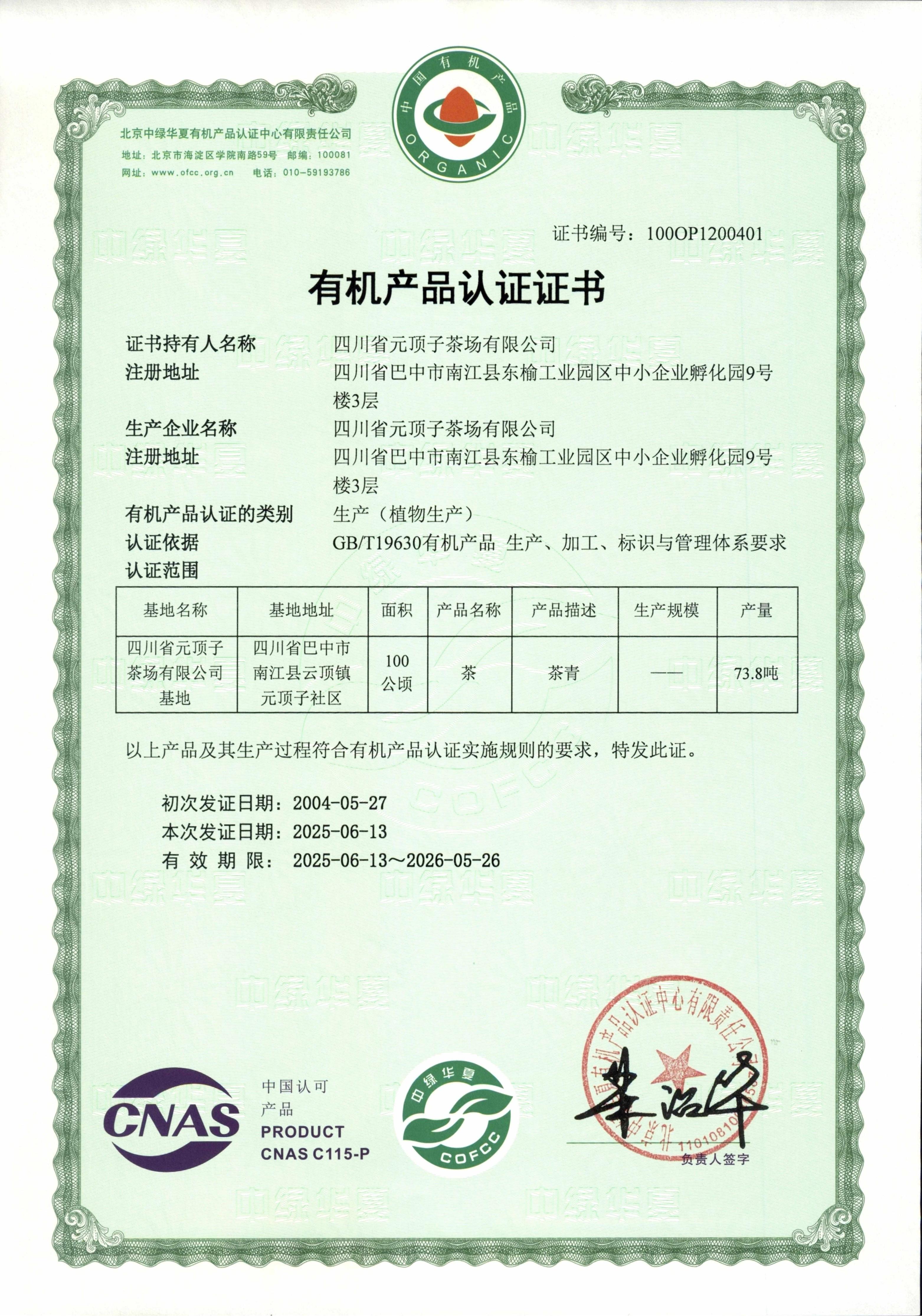 四川省元顶子茶场有限公司前身是四川省元顶子茶场,始建于1951年,面积2.78万亩,自有茶园面积达5500亩,平均海拔1280米,是 四川省农业产业化重点龙头企业、川东北最大的富硒茶生产基地。2015年成功创建农业生态示范园,2016年10月成功创建云顶茶乡国家AAAA级 旅游景区。近年来,元顶子茶场遵循“名优茶大众化、大宗茶优质化”的思路,实施“巴中云顶+南江大叶茶+企业商标”品牌策略,建基地、搞加工、促销售,实现了茶旅融合发展。茶场践行三产融合发展理念,做强做优茶产品品牌,全力推进茶产业高质量发展,2024年产干茶212吨,产值5919万元,以茶场为核心辐射带动全县25个宜茶乡镇发展茶叶产业30万亩、茶农年均增收1000元以上,有效带动了乡村产业振兴、百姓增收致富。