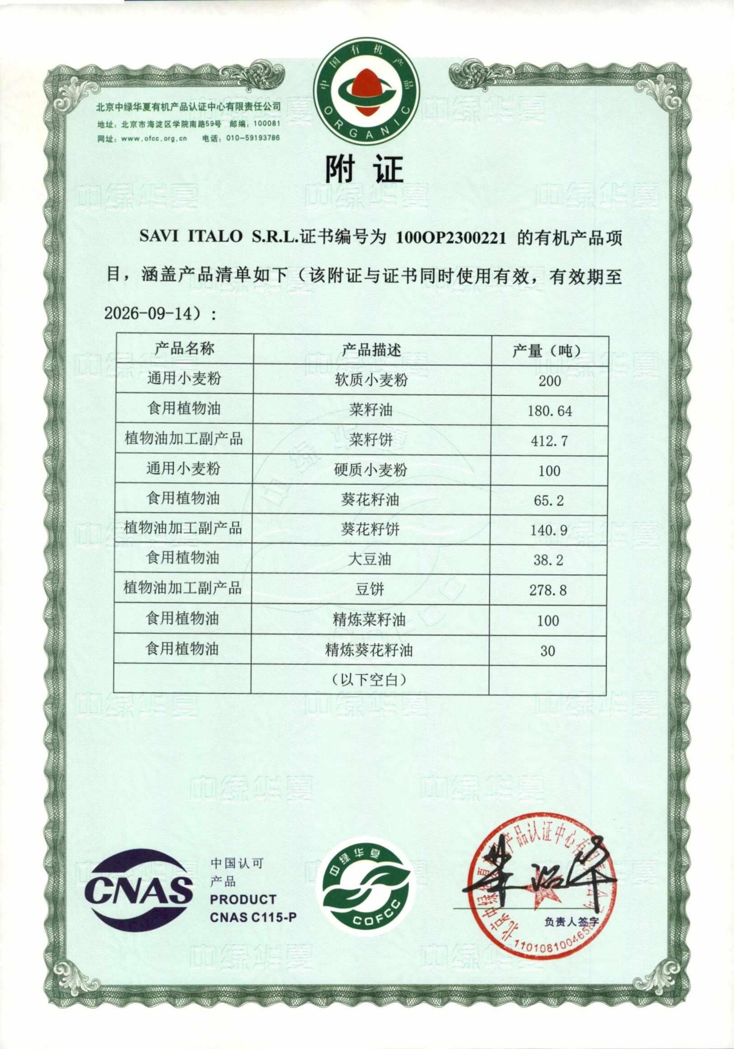 SAVI ITALO S.R.L所生产的产品包括菜籽油、亚麻籽油、大豆油、葵花籽油、玉米油、软质小麦、硬质小麦、斯佩耳特小麦、去壳葵花籽、去壳斯佩耳特小麦、大豆种子、去壳大豆种子。每批产品都会进行采样并经过一系列检查以保证产品质量。