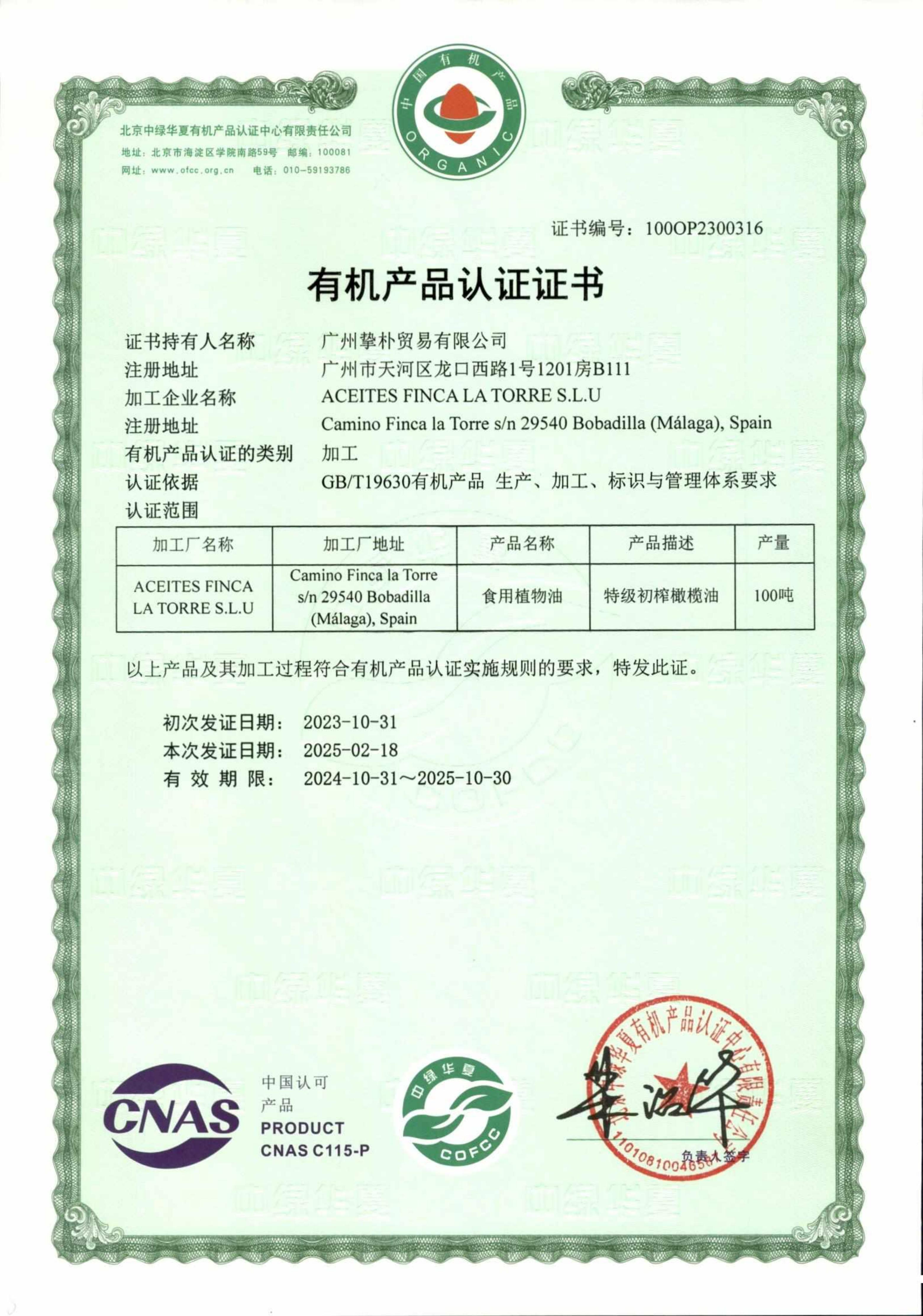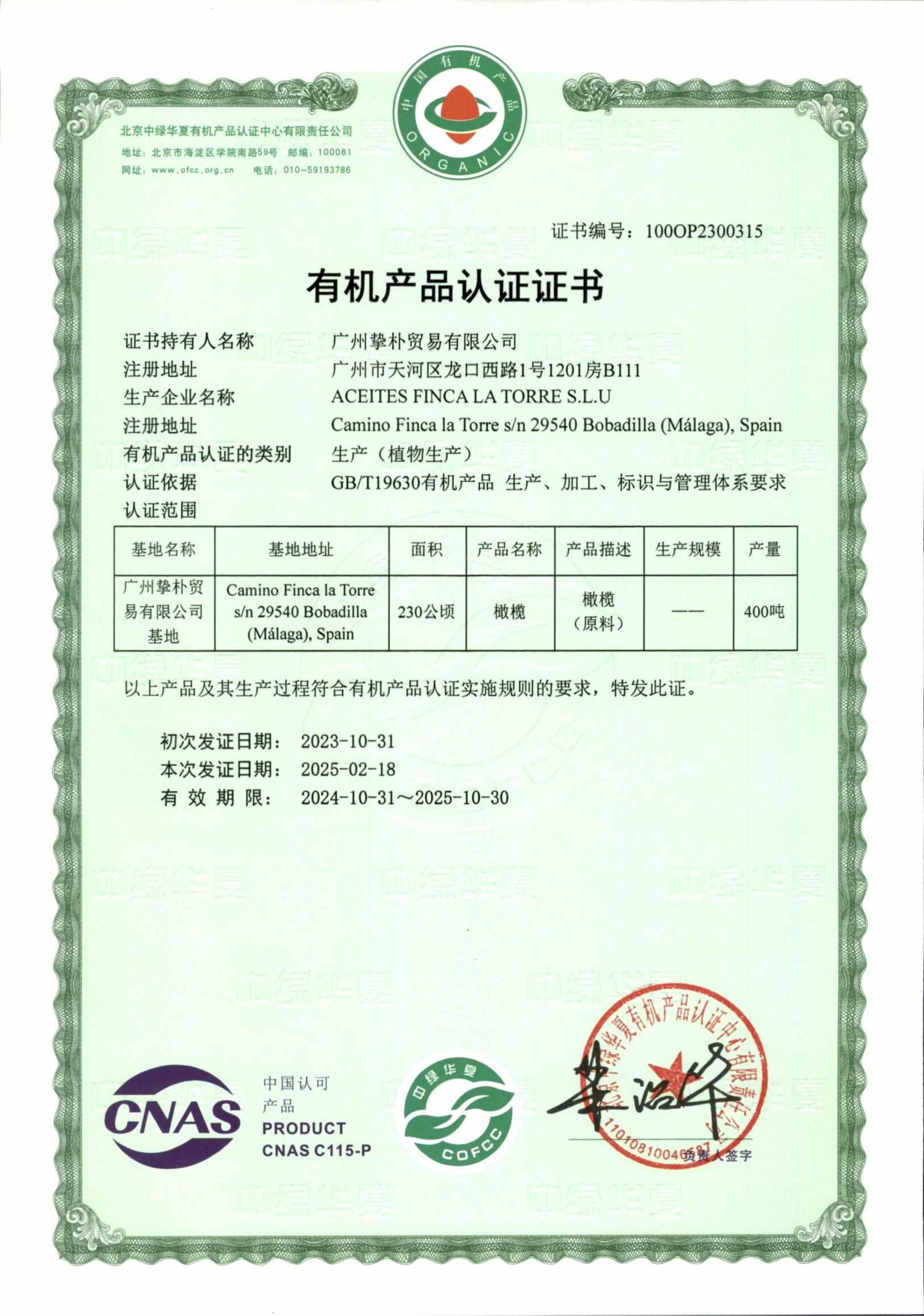 广州挚朴贸易有限公司致力于生态和可持续的生产,利用生物动力农业来发展活动,其目的是恢复土壤的肥力,并允许动物和植物共生共存,进行最少的人为干预。霍吉布兰卡(Hojiblanca)是生长在西班牙科尔多瓦省和马拉加省的石灰石土壤和干旱地区的特有品种。果实成熟时间偏晚,通常在每年11月末到12月末;果实大而饱满、呈球形,重量厚实,既可作为食用橄榄,也可用于榨油;产油量略低于其他品种,出油率在17%~19%。另外,其油酸含量使其在高温下比其他品种更耐氧化。它具有非常平衡的脂肪酸成分,饱和酸比其他油略低,从营养的角度来看,它含有75%的油酸和7%的亚油酸,非常健康。饱和脂肪酸和脂肪酸之间非常平衡,脂肪酸含量比其他品种低,维生素E含量高,而总多酚含量属于中等,具有柔软度和甜味。