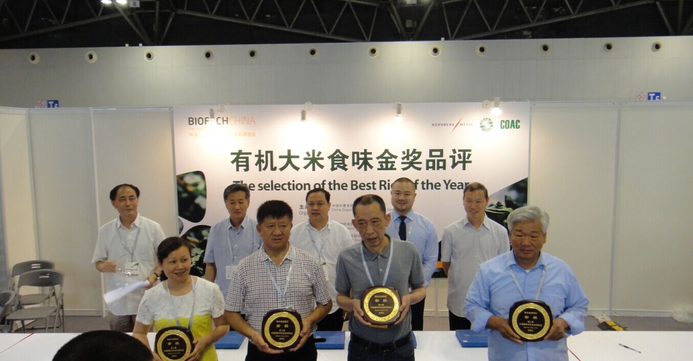 由中国绿色食品发展中心、中绿华夏有机食品认证中心和德国纽伦堡展览服务(上海)有限公司联合主办的,由中国水稻研究所、农业部稻米及制品质量监督检验测试中心承办的第九届中国国际有机食品博览会“有机大米食味金奖品评活动”于2015年5月28-29日在上海浦东新区世博览展馆的博览会现场举行。参加博览会的参展商中有46家经有机认证的品牌有机大米申报参加了本次金奖品评活动。经严格按照国家相关标准制定的《品评实施规则》对应,又经专家组和消费者(观众)二轮品尝打分排序,最终通过组委会的审定,确定了本届博览会品评的食味金奖大米4个、味佳奖大米12个、味优奖大米10个(获奖名单附后),其余为参评优胜奖。