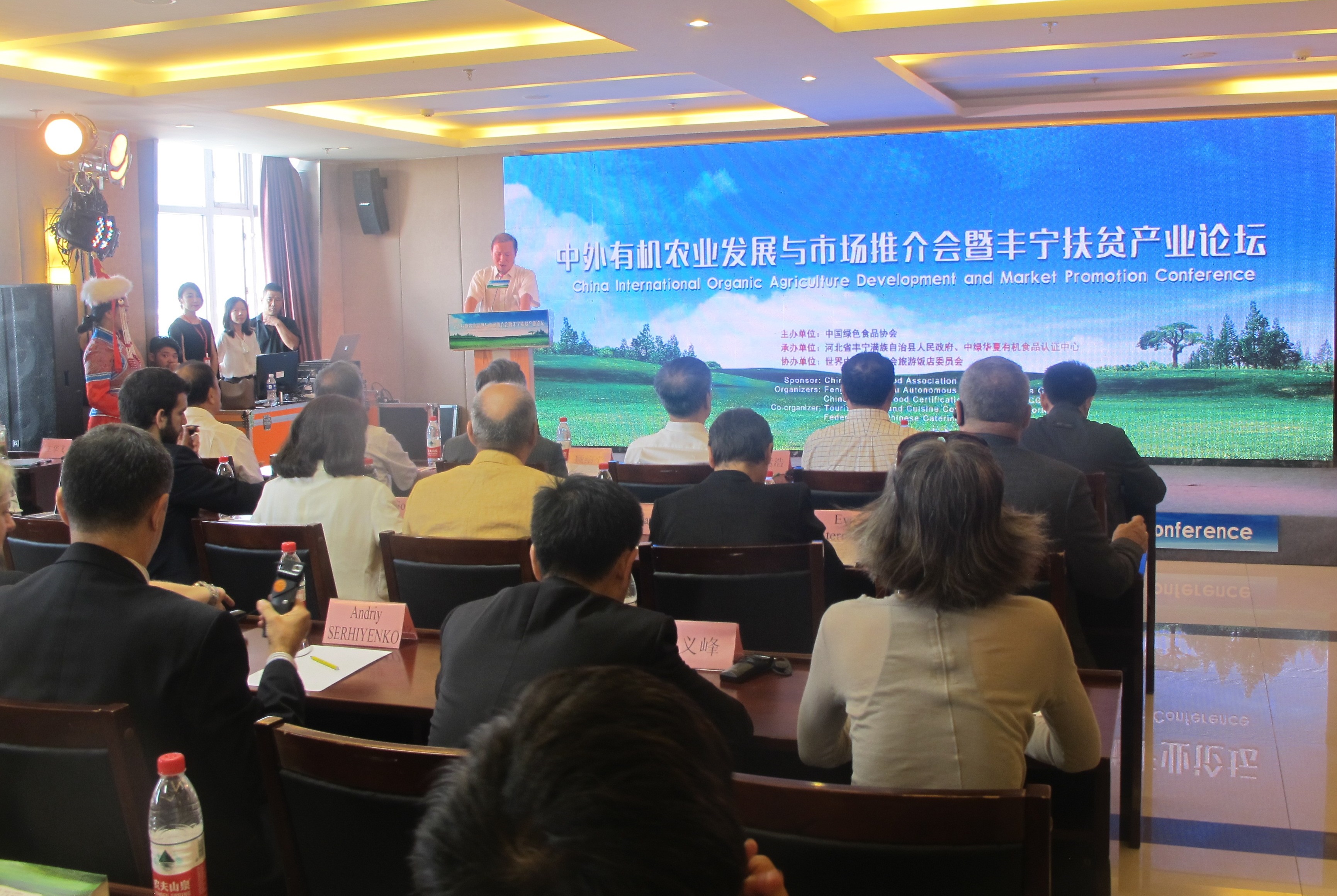 会议由中国绿色食品协会主办,我中心和丰宁满族自治县人民政府承办,世界中餐业联合会旅游饭店委员会协办。来自河北省绿色食品办公室、国家认证认可监督管理委员会、中国农业大学农业规划科学研究所、承德市人民政府、丰宁满族自治县人民政府、凤凰创意会展服务有限公司、获得中心认证的多家有机企业的60余名代表参会。
